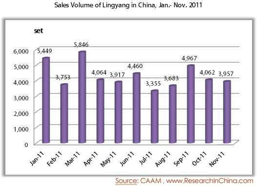 Sales Volume of Lingyang in China, Jan.- Nov. 2011
