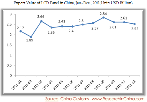 Export Value of LCD Panel in China, Jan.-Dec., 2011