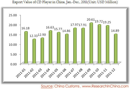 Export Value of CD Player in China, Jan.-Dec., 2011