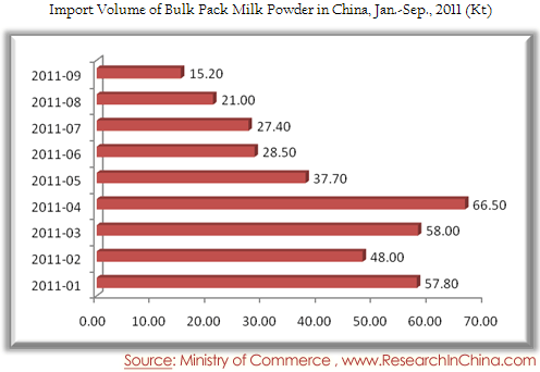 Import Volume of Bulk Pack Milk Powder in China, Jan.-Sep., 2011