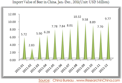 Import Value of Beer in China, Jan.-Dec., 2011