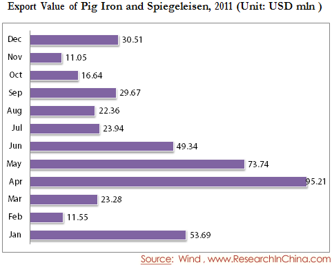 Export Value of Pig Iron and Spiegeleisen, 2011