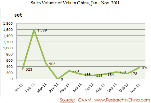 Sales Volume of Vela in China, Jan.- Nov. 2011