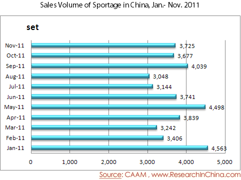 Sales Volume of Sportage in China, Jan.- Nov. 2011