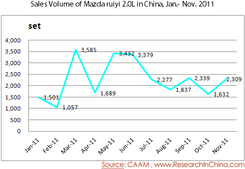 Sales Volume of Mazda ruiyi 2.0L in China, Jan.- Nov. 2011
