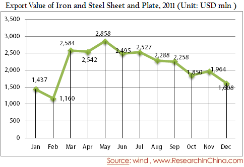 Export Value of Iron and Steel Sheet and Plate, 2011