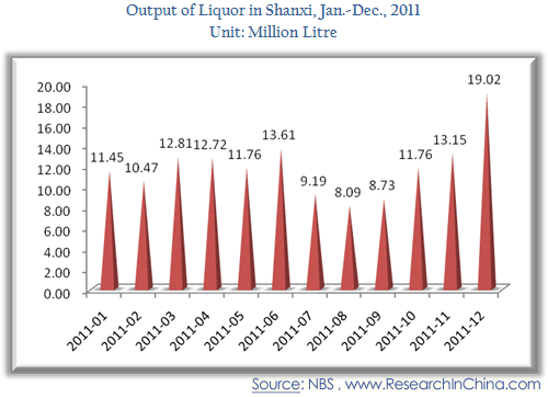 Output of Liquor in Shanxi, Jan.-Dec., 2011