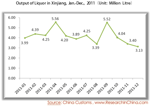 Output of Liquor in Xinjiang, Jan.-Dec., 2011