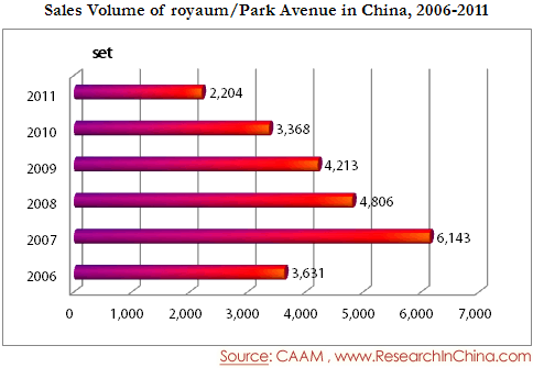 Sales Volume of royaum/Park Avenue in China, 2006-2011