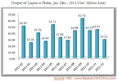 Output of Liquor in Hubei, Jan.-Dec., 2011