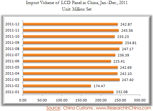 Import Volume of LCD Panel in China, Jan.-Dec., 2011