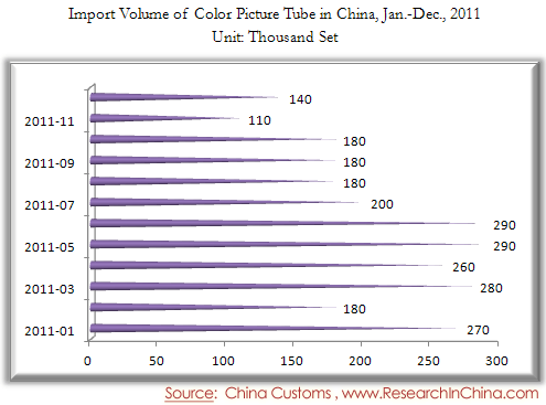Import Volume of Color Picture Tube in China, Jan.-Dec., 2011
