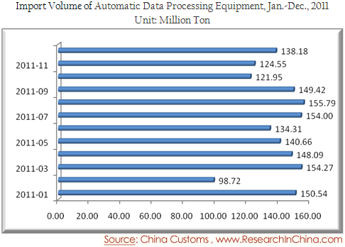 Import Volume of Automatic Data Processing Equipment in China, Jan.-Dec., 2011