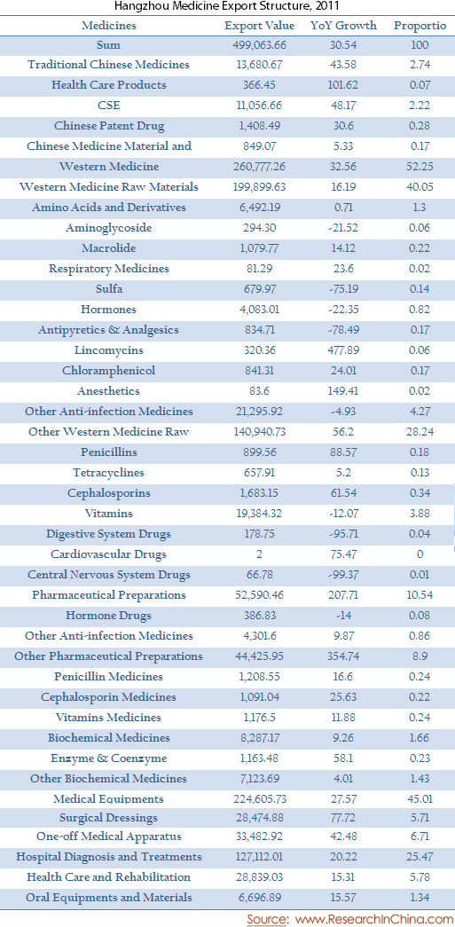 Export Value of Medical and Pharmaceutical Products in China, 2011