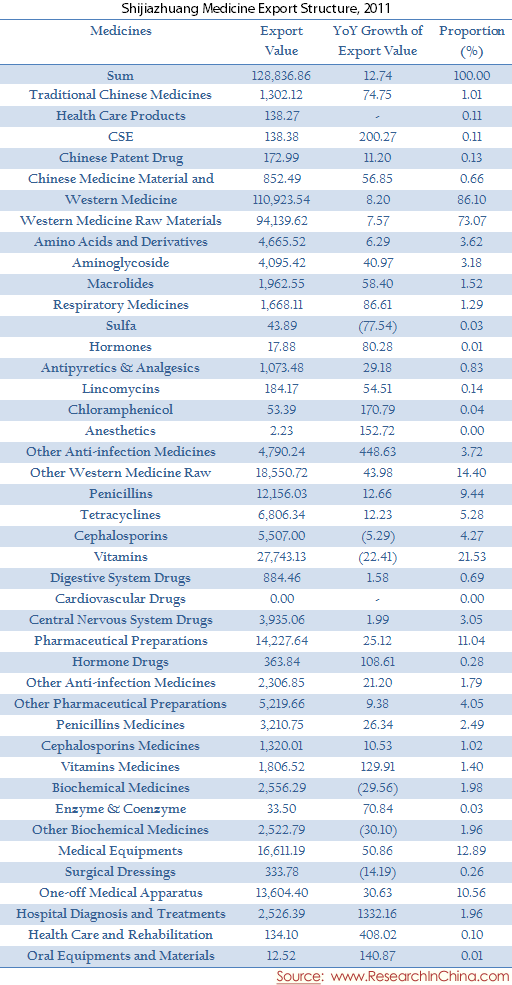 Export Value of Medical and Pharmaceutical Products in China, 2011