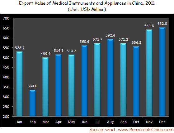 Export Value of Medical Instruments and Appliances in China, 2011