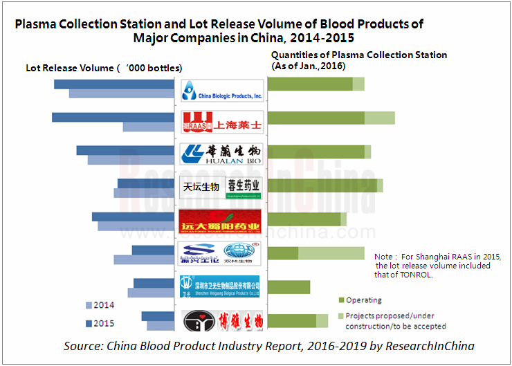 Plasma Collection Station and Lot Release Volume of Blood Products of Major Companies in China, 2014-2015