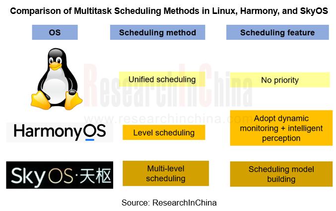 Linux, Harmony, SkyOS and other operating systems use different scheduling methods for multitasking, and evolved from initial unified scheduling to multi-layer scheduling, which improves processing efficiency, as well as security performance.