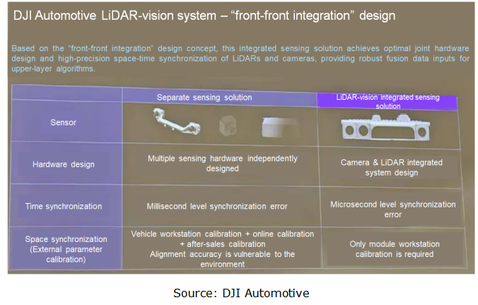 Based on the needs of L3 autonomous driving, in 2024 DJI Automotive introduced a LiDAR-vision system, which combines LiDAR, stereo sensor, long-focus mono camera and inertial navigation. Compared with the currently common "LiDAR + front camera" solution on the market, the system can reduce the costs by 30% to 40%, while enabling 100% performance and replacing all the functions. Thanks to the integrated design, the "LiDAR-vision" solution can also be built into the cabin as a whole, reducing the overall installation costs.????