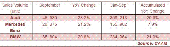 Sales Volume of Thee Limousine Brands in China, Sep. 2013