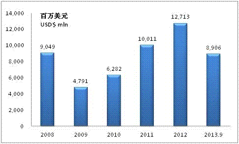 Export Value of Auto and Automotive Chassis in China, 2008-2013