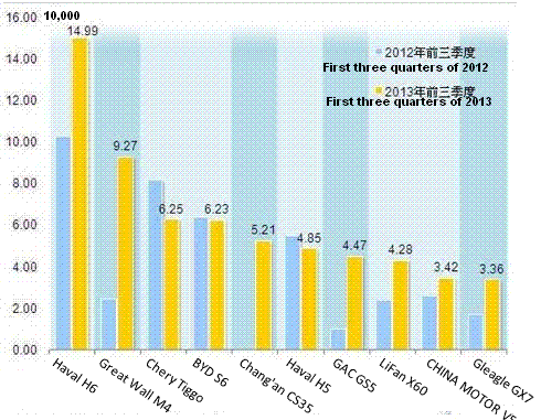 Sales Volume of Top 10 Independent Brands’ SUV, Jan.- Sep. 2013