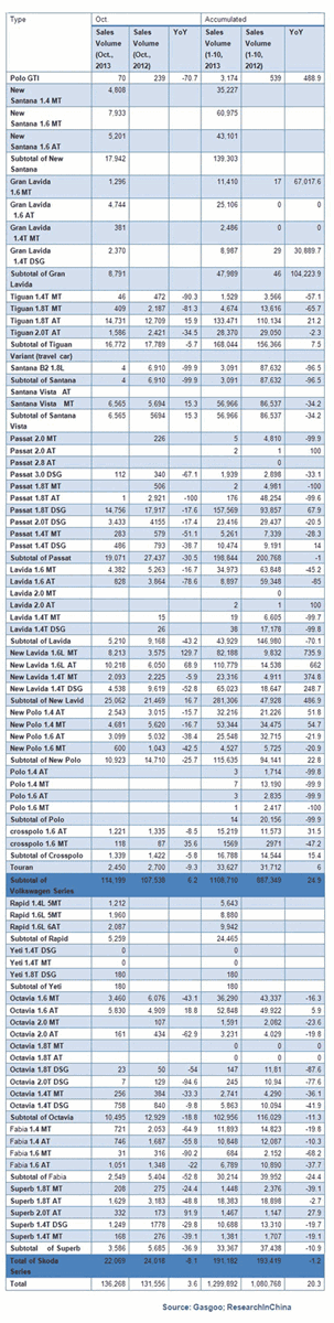 Sales Volume of Shanghai Volkswagen, Oct., 2013