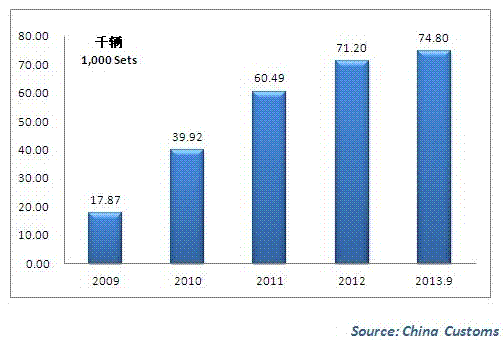 Export Volume of China’s Passenger Car (9 seat or below, including full set of parts), 2009-2013