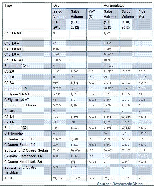 Sales Volume of Dongfeng Citroen, Oct., 2013