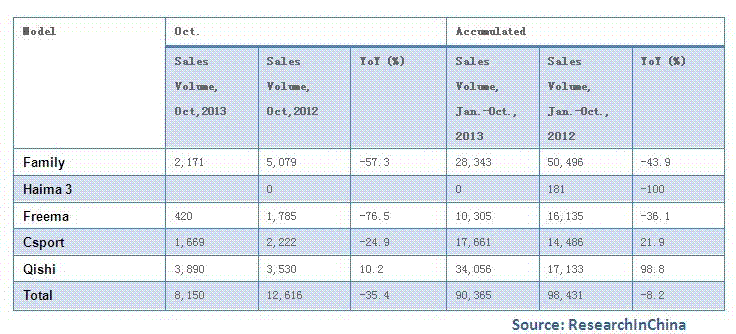 Sales Volume of FAW Haima by Model, Oct., 2013