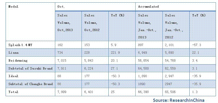 Sales Volume of Changhe Auto by Model, Oct., 2013