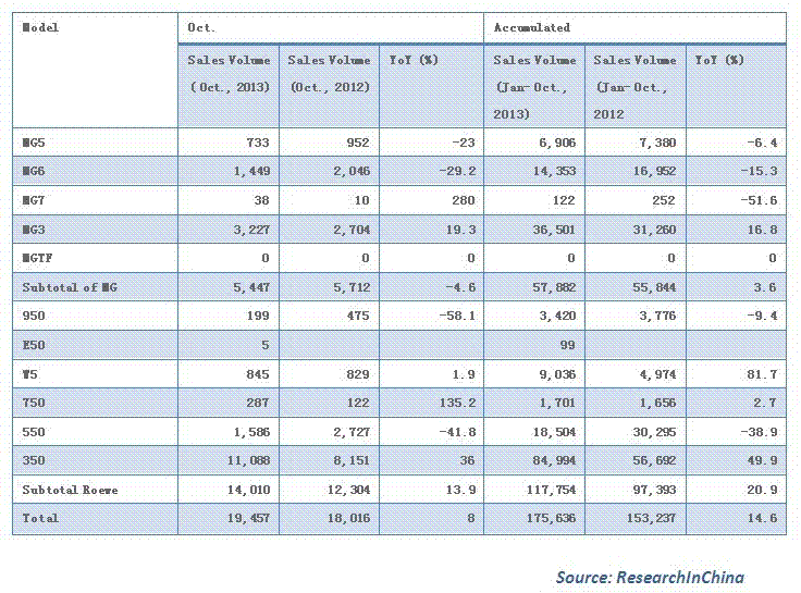 Sales Volume of SAIC Motor by Model, Oct., 2013