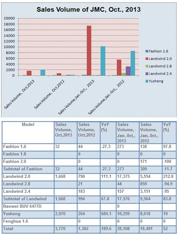 Sales Volume of JMC by Model, Oct.2013