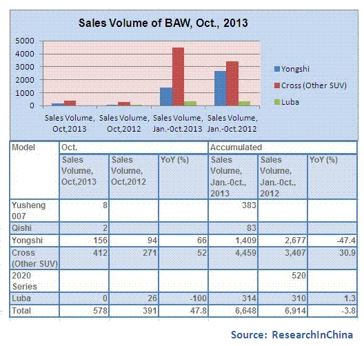 Sales Volume of BAW by Model, Oct., 2013