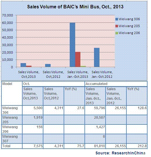 Sales Volume of BAIC’s Mini Bus, Oct., 2013