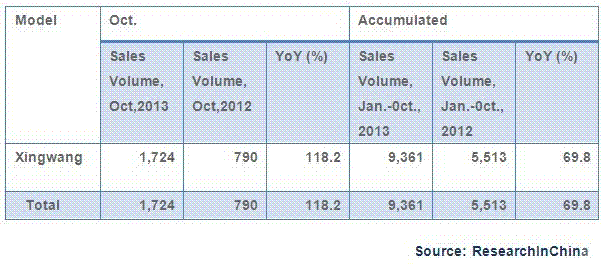 Sales Volume of GAC Gonow’s Mini Bus, Oct., 2013