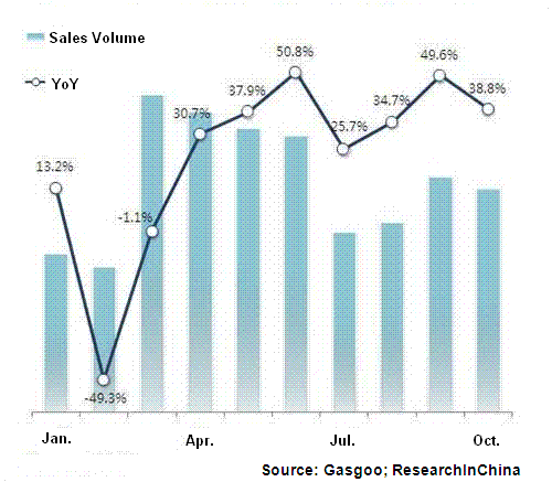 Sales Volume and YoY of Heavy Truck in China, Jan. – Oct., 2013