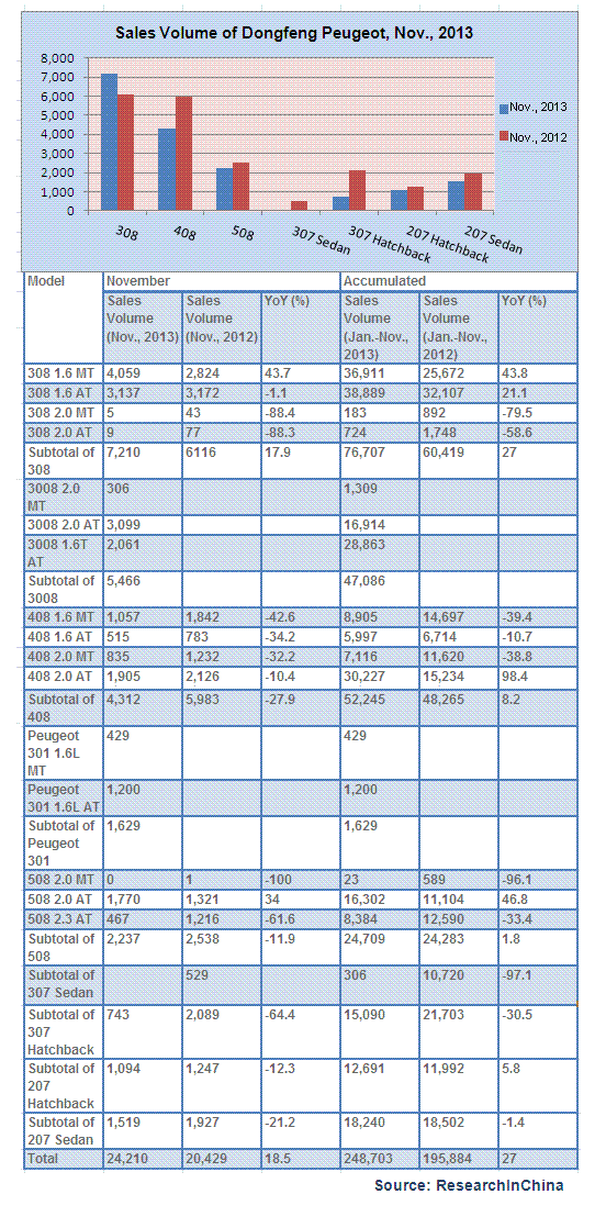 Sales Volume of Dongfeng Peugeot by Model, Nov., 2013