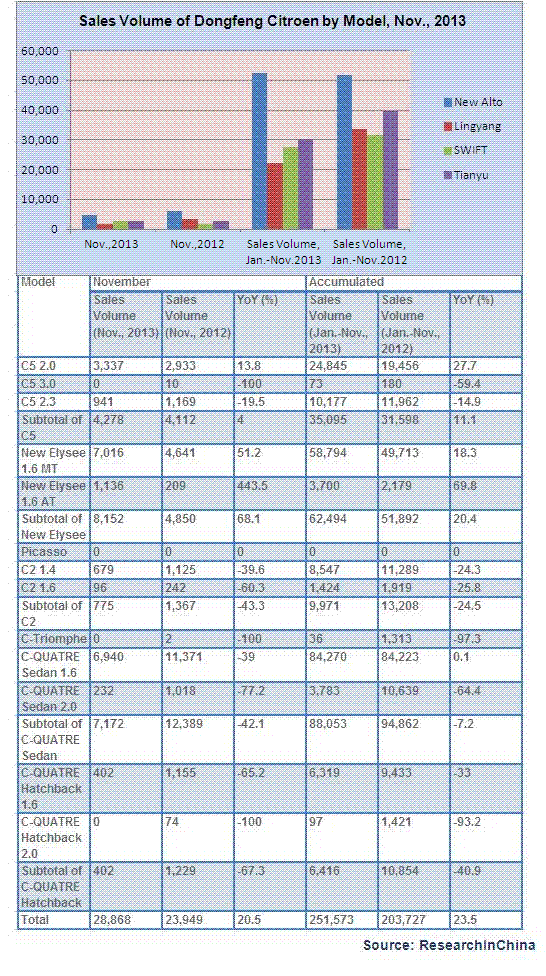 Sales Volume of Dongfeng Citroen by Model, Nov., 2013