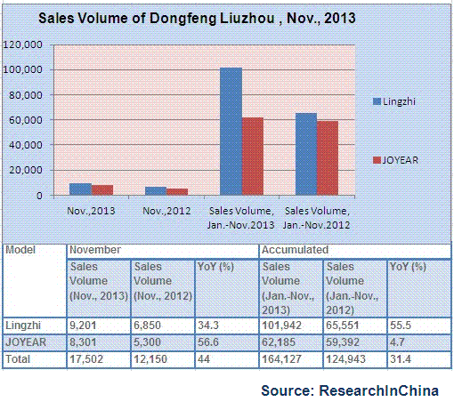 Sales Volume of Dongfeng Liuzhou by Model, Nov., 2013