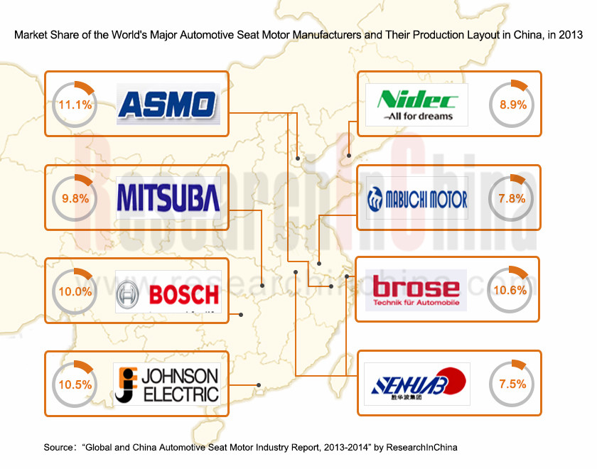 Market Share of World's Major Automotive Seat Motor Manufacturers and Their Production Layout in China in 2013