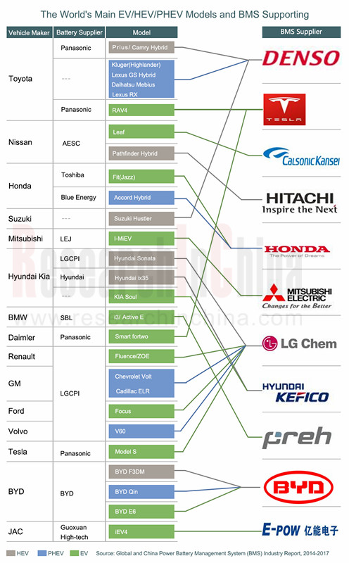 The World's Main EV/HEV/PHEV Models and BMS Supporting