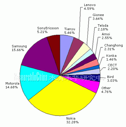 Market Shares for Main Mobile Phone Brands in China, 1H2007